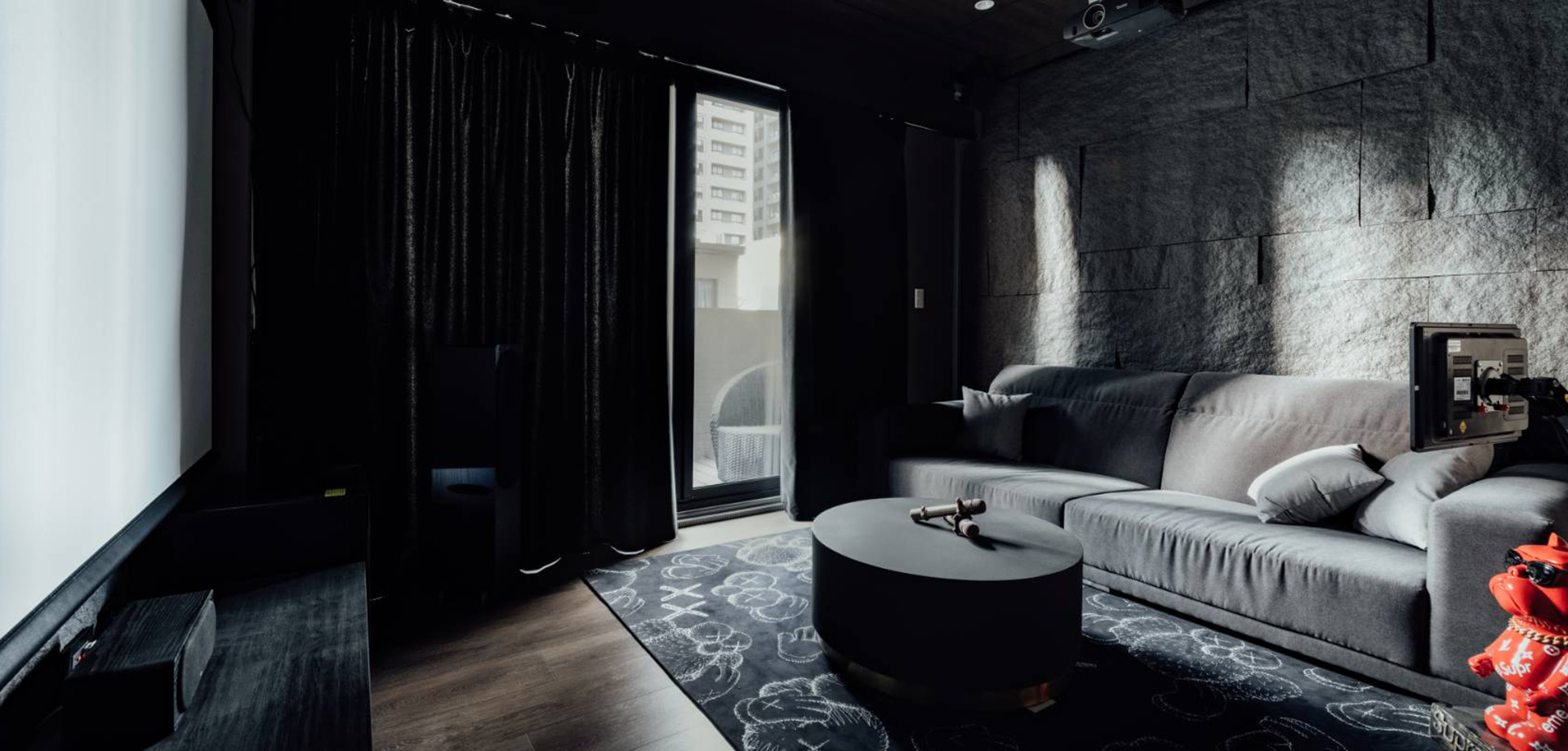 底材是矽酸鈣板,表層上了高耐後仿清水模塗料,簡單安裝輕隔間不用另外塗裝或貼壁紙了,裝上去就OK~