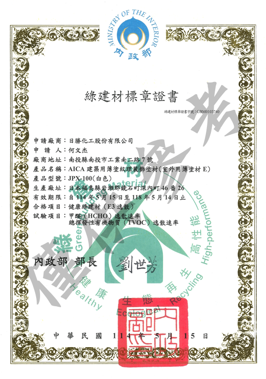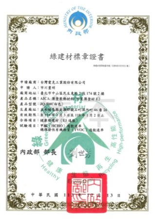 AICA-JPX-100 綠建材標章證書