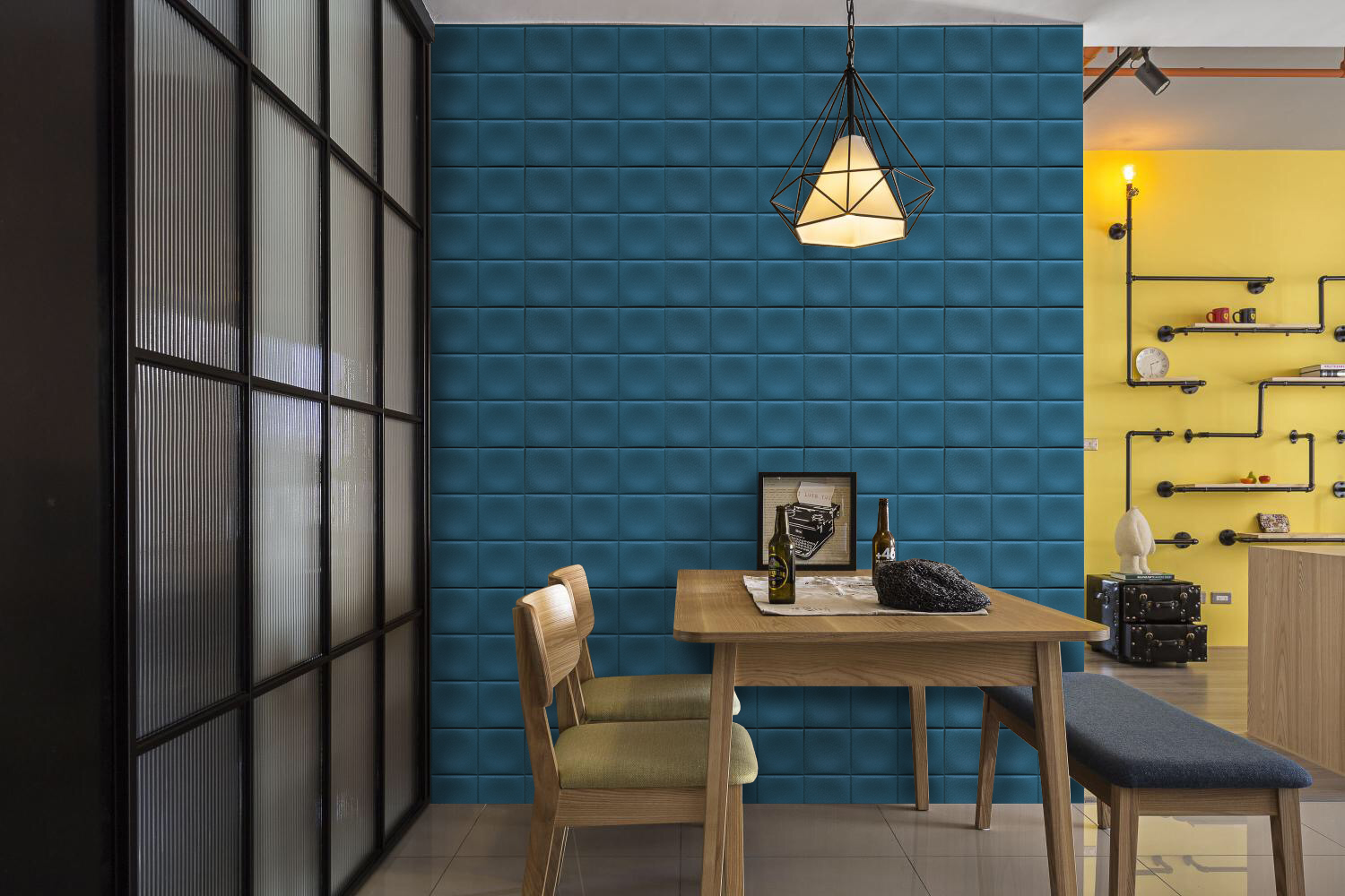可設計在居家或是公共空間壁面,玄關,天花板,櫃體,傢俱等……..任何想裝飾的地方都可以使用,讓居家生活輕鬆獲得全新裝飾藝術,安裝只需使用皮革磚專用環保結構雙面膠,遇邊角尺寸不合可直接使用美工刀裁切。